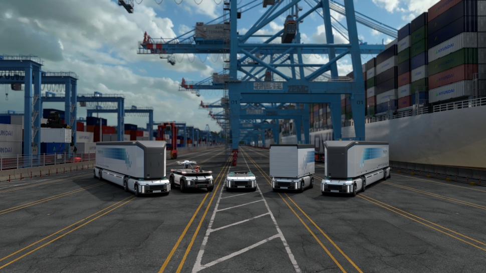 A. 이상엽 전무: 트레일러 드론은 수소를 동력으로 하는 트레일러 운송 체계다. 이산화탄소 배출 이 없기 때문에 실내에서도 운행이 가능하다. 트레일러 드론은 e-보기로 구성돼 있어 조작 조종력이 향상돼 있다. 회전 교차로에서도 굉장히 부드럽고 자연스럽게 선회할 수 있다. 트레일러 드론은 연료전지 로보틱스, 트럭 자율주행과 같은 기술이 총체적으로 구현됐다. 디자이너로서 가장 큰 과제는 인류의 새 가치를 만들어내는 것. 새로운 관점에서 사고를 하도록 계속 영감을 받았고, 트레일러 드론은 그 자랑스러운 결과물이다.