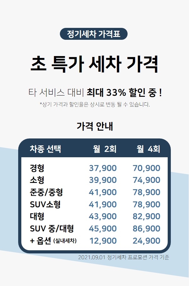 한편 세차클링은 이달 말일까지 서비스 출시 기념 3000원 쿠폰 이벤트를 함께 진행한다. 이용자들은 쿠폰관리 페이지에서 쿠폰코드 ‘세차클링’을 입력하면 3000원 할인을 받을 수 있으며 포인트와 중복 사용은 불가하다.