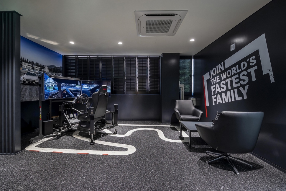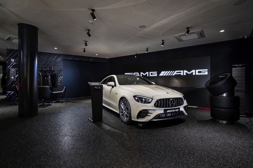 또 최대 8대의 차량을 전시하고 외부에는 총 14대의 시승차를 갖춰 AMG 모든 엔진 라인업을 경험할 수 있게 마련해 AMG 전용 전시장임을 강조했다. 이 역시 사전예약제로 진행하며 원하는 시간만큼 시승이 가능하다. 아울러 서킷을 연상케하는 인테리어를 적용하고 디지털 게이밍존에는 레이싱 시뮬레이션을 할 수 있다. 아시아 최초로 적용된 ‘원 디스플레이(One Dispaly)’를 통해서 나만의 AMG를 만들 수 있으며 AMG 사운드 카운터를 통해 AMG 차량만의 사운드를 경험할 수 있다.