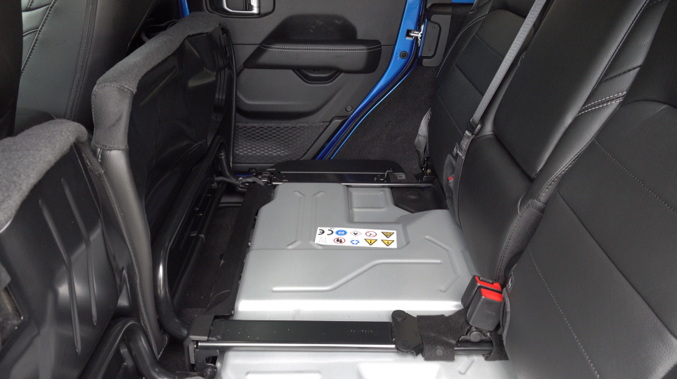 4xe 하이브리드에는 2개의 전기모터와 360V 17kWh 리튬 이온 배터리 팩이 들어간다. 배터리는 2열 시트 아래 위치하고, 기온에 따라 배터리의 컨디션이 달리지지 않게 가열과 냉각회로를 장착했다. 그러니까 어떤 브랜드 전기차처럼 겨울철만 되면 효율이 30%이상 떨어지는 일이 없다는 이야기다. 국내 인증 기준 1회 충전으로 갈 수 있는 거리는 32km로 여느 브랜드의 플러그인 하이브리드와 비슷한 거리를 전기로 달릴 수 있다. 랭글러답게 순수 전기 모드에서도 네 바퀴를 모두 굴릴 수 있다. 이 배터리는 완속 충전으로 3시간이면 완충이 가능하고 예약 옵션을 사용할 수도 있다.
