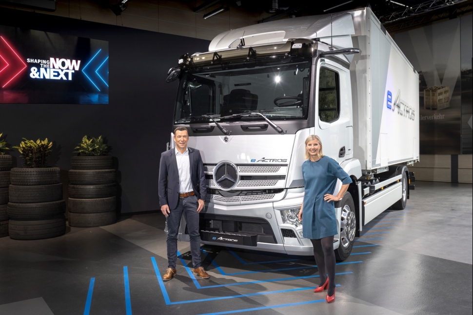 한편 다임러 트럭 AG는 2030년에는 유럽에서 판매하는 신차의 절반 이상을 배출가스가 없는 차량으로 하는 것을 목표로 하며 2050년까지 운송에서 탄소 중립을 이루고자 한다. 이에 장거리 대형 순수 전기 트럭인 e악트로스를 비롯해 2027년부터 수소 기반 연료전지 트럭을 자사 라인업에 추가할 예정이다.
