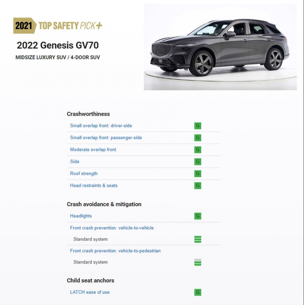 Tags :  제네시스  IIHS  제네시스안전성  GV70  G70