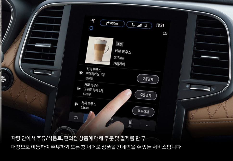 이번 신형 모델의 눈에 띄는 변화는 차량용 간편결제 시스템인 ‘인카페이먼트(In-Car Payment)’ 적용이다. 비대면 주유는 물론 편의점과 식음료 가맹점 메뉴를 차 안에서 확인해 주문부터 픽업까지 할 수 있다. 출발 전 중앙 화면에서 ‘오윈’ 앱을 터치해 주문, 결제하고 매장 길안내까지 받을 수 있다. 이미 신형 XM3에 적용된 바 있지만, 이번에는 예상 도착 시간을 보여주고 이를 점포에 전달하는 기능까지 포함됐다. 운전자가 할 일은 매장 앞에 도착해 호출 버튼을 누르고 제품을 창을 통해 건네 받는 것 뿐이다. 번거로울 것 같은데 막상 사용해보면 편리하다.
