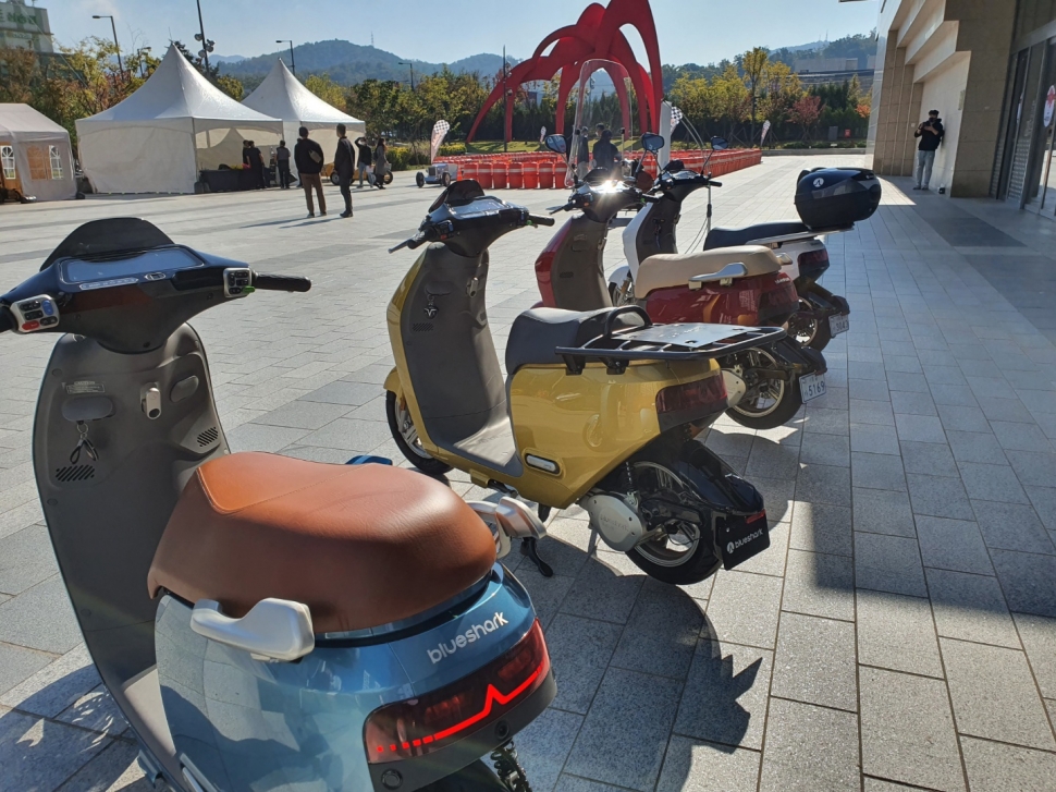 기간 중 고양 스타필드에서 만나볼 수 있는 ‘블루샤크 R 시리즈’는 친환경 고성능 전기스쿠터다. 한 번 충전으로 최대 160km를 주행할 수 있으며 최고 속도 80km/h, 최대 등판능력 40% 등 가솔린 스쿠터 이상의 성능을 확보했다. 충전은 220V 배터리 충전과 차체 직접 축전, 배터리 스테이션을 통한 충전 교체 등 3가지 방법으로 가능하다.