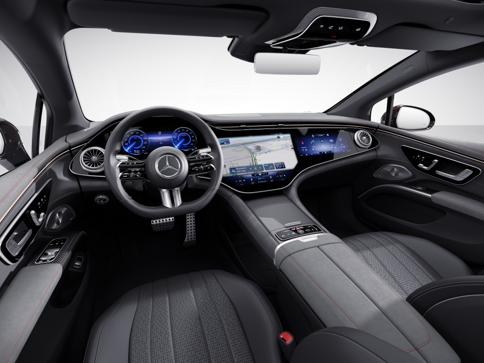 실내에는 전체 계기반 패널이 하나의 와이드 스크린으로 이어진 MBUX 하이퍼스크린을 최초로 적용하고 64가지 컬러 조명으로 원하는 스타일과 분위기를 연출하는 액티비 앰비언트 라이트도 넣었다. 아울러 에너지 밀도를 높인 차세대 배터리를 장착하고 자체적으로 개발한 배터리 관리 소프트웨어로 무선 업데이트를 지원해 에너지 관리 시스템을 가장 최신 상태로 유지할 수 있다.