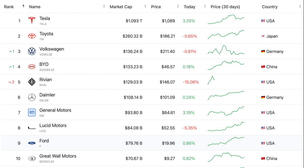한편 글로벌 자동차 시가총액 10위권에 자리한 전기차 업체만 테슬라, BYD, 리비안, 루시드 등 4곳이다. 20위권에는 중국 전기차 업체 니오, 샤오펑, 리오토까지 진입해 있다. 이 밖에 오는 LA오토쇼에서 전기 크로스오버 오션 공개를 앞둔 '피스커', 내년 양산을 목표로 배송용 전기 밴을 개발 중인 '카누' 등도 각각 37위, 41위에 자리하고 있다.