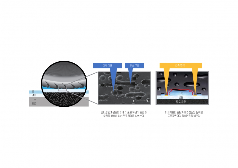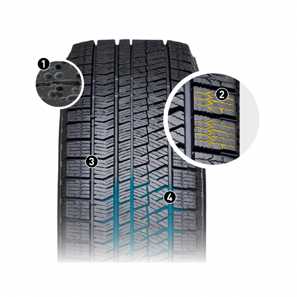 브리지스톤은 블리작 아이스 표면에 발포고무 멀티셀 기포 구조를 적용해 배수기능을 높였다. 해당 구조는 타이어와 눈길, 빙판길의 접지면적을 넓혀줘 주행 및 제동 시의 접지력도 향상했다. 브리지스톤 자체 실험 결과에 따르면 블리작 아이스는 기존 겨울용 타이어 모델과 비교해 제동거리를 8% 이상 단축했다.