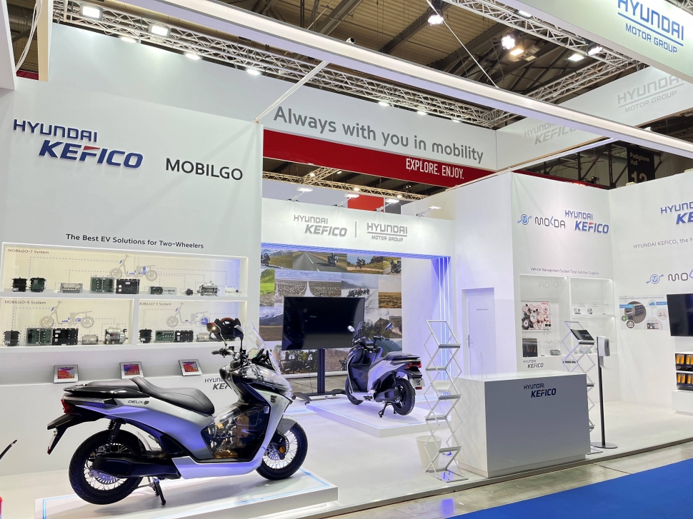 오는 28일까지 열리는 EICMA 2021은 1200여개 업체가 참가하고 약 80만명이 참관하는 세계 최대 규모의 모터사이클 전시회다. 이번에 첫 참가한 현대케피코는 7kW, 5kW, 3kW급 전기이륜차 구동시스템인 모빌고 라인업과 모빌리티 데이터 서비스 ‘몰다’를 선보였다.
