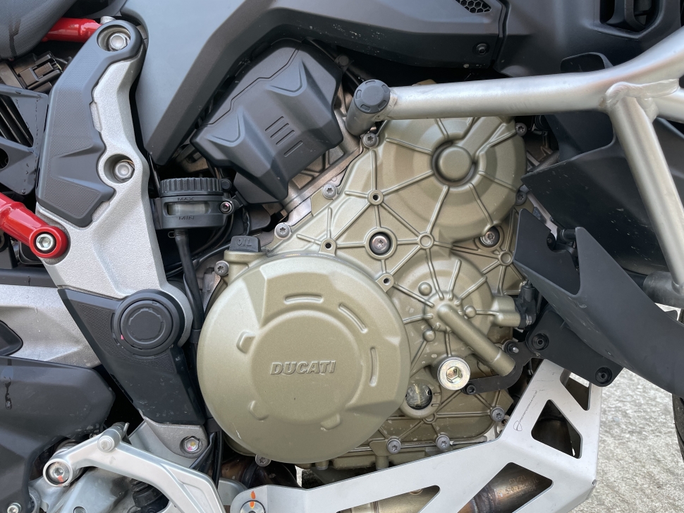 멀티스트라다 V4 S의 또 다른 고속 주행 비결은 엔진이다. 170마력의 최고출력과 12.7kg.m의 최대토크 발생 시점이 각각 10,500rpm, 8,750rpm으로 설정된 고회전 엔진이다. 그러나 회전수를 3,000rpm 이상으로만 높여도 충분한 힘이 쏟아진다. 확실히 V2 엔진만큼 저회전대 토크가 두툼하진 않다. 상대적으로 박진감도 떨어진다. 그러나 공차중량이 약 240kg인 차체를 빠르게 가속하고도 남을 힘이 느껴진다. 무엇보다 저회전대에서 일찍 만들어진 힘이 고회전까지 매끈하게 이어져 다루기가 편하다. 어느 시점에서든 스로틀을 살짝만 비틀어도 속도가 부드럽게 올라간다.