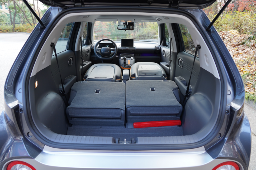 처음 현대차가 캐스퍼를 내세우면서 꺼내 든 키워드가 뜬금없이 ‘차박’이라서 조금 의아했는데 모두 폴딩되는 시트를 보고서야 해소됐다. 시트와 시트 사이의 공간이 있어 조금 불편하지만 인터넷에서 판매하고 있는 차박용 매트를 구매한다면 꽤 안락한 공간이 만들어 질 거다. 모든 시트가 풀 폴딩되는 것은 국내에서 판매하고 있는 경차 중 유일하며 레이는 운전석이 아닌 조수석과 뒷시트만 폴딩된다.