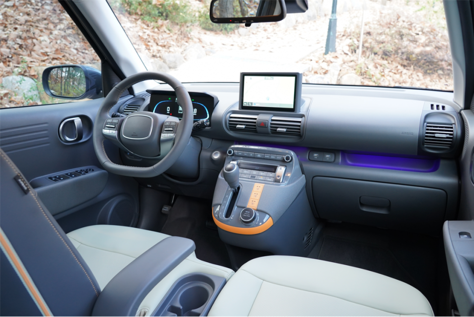 실내는 조금 장난감 같다. 대시보드와 송풍구 형상을 반원으로 만들어 놓은 것도 눈에 띈다. 보통 경차들은 구성은 단출하게 하는 반면 캐스퍼는 그 속에서도 멋과 실용성을 챙겼다. 변속기 주위의 오렌지색으로 멋을 내거나 대시보드와 조수석 글러브박스 사이에 수납 공간을 만들어 스마트폰이나 지갑 등을 넣을 수 있다. 다만 바닥 쪽에 고무 패드가 없어 차체에 따라 이리저리 왔다갔다하지만.