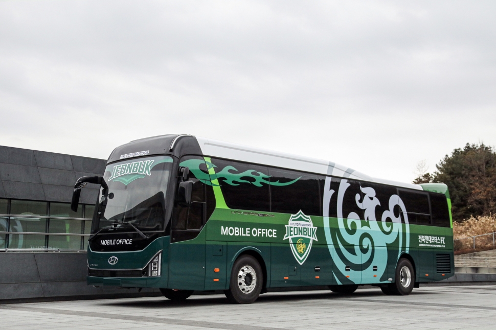 [오토캐스트=강명길 기자] 현대자동차가 유니버스 작전지휘차를 공개하고 2021년 K리그 우승 및 사상 첫 5연패를 달성한 전북 현대 모터스 축구팀에 전달했다고 6일 밝혔다. 유니버스 작전지휘차는 현대차의 프리미엄 고속버스인 유니버스를 사무 공간으로 커스터 마이징한 ‘유니버스 모바일 오피스’의 하나로 전북 현대 모터스와 함께 개발했다.