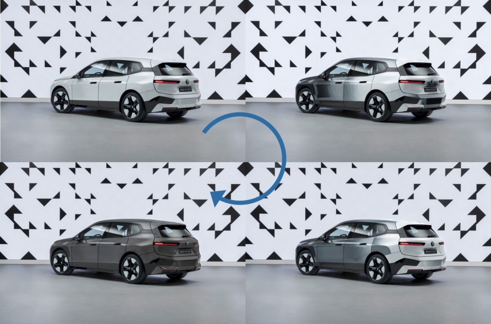 iX 플로우는 BMW의 순수전기 SAV iX에 전자잉크 기술을 적용한 차량이다. 사용자가 색상 변경을 선택하면 전기장에 의한 자극이 발생한다. 이로 인해 차량의 윤곽에 맞춰 정밀하게 재단된 래핑에 들어있는 수백만 개의 마이크로 캡슐 표면에 안료가 모임에 따라 자동차 외장이 원하는 색으로 변화하는 원리다.