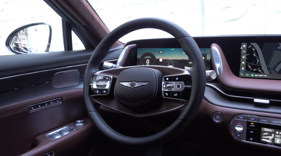 실내는 기함답게 굉장히 고급스럽다. 미래지향적인 디자인을 추구하는 요즘 트렌드를 따라 센터 송풍구 사이에 있던 아날로그 시계를 없앴다. 송풍구가 있는 듯 없는 듯 배치했고 그 아래에는 공조 장치가 그대로 들어간다. 실내에선 도어 손잡이는 보이지 않으며 모두 버튼으로 도어를 열고 닫을 수 있다. 오디오도 달라졌다. 원래 G90에는 렉시콘이 들어갔다. 하지만 이번엔 뱅앤올룹슨을 선택했다. 그리고 세계에선 처음으로 버추얼 베뉴를 적용했다.