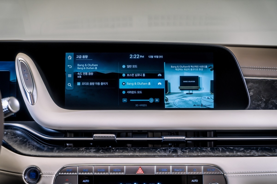 G90에는 현장감 있는 음장 특성을 구현하는 버추얼 베뉴 라이브를 적용했다. 이는 보스턴 심포니 홀과 뱅앤올룹슨 레퍼런스 사운드 청취 공간을 가상으로 재현한 뱅앤올룹슨 홈을 통해 해당 공간의 음장 특성을 재현한다.