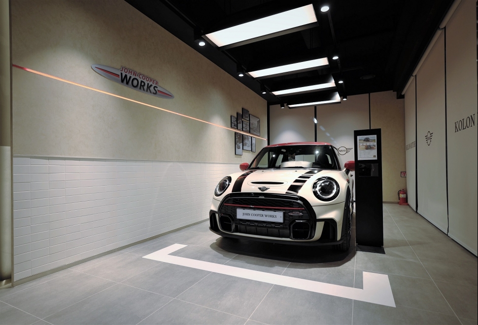 실내에는 총 5대의 차량을 전시할 수 있으며 신차 출고 고객을 위한 프라이빗 핸드 오버 존과 고성능 모델 JCW 전용 전시 공간인 ‘CW 존 등을 마련했다. 또 브랜드 최초의 순수전기 모델 MINI 일렉트릭을 위한 전시 공간인 E-존을 새롭게 구성해 고객들에게 새로운 라이프스타일을 선보일 예정이다.