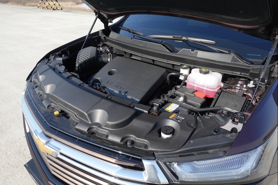 보닛 아래에는 이전과 마찬가지로 최고출력 314마력, 최대토크 36.8kg·m를 내는 V6 3.6리터 엔진이 들어간다. 엔진 회전 초반엔 살짝 소음이 있지만 속도가 올라가도 급격하게 시끄럽거나 진동이 실내로 들이치는 경우는 없다. 저속이든 고속이든 트래버스는 속도와 상관없이 움직임이 운전자의 예상을 고스란히 따르고 앞뒤 바퀴 움직임 조화도 좋다. 그리고 끈끈하게 노면을 붙잡는 느낌도 한결같다. 그래서 큰차를 운전하는 게 그리 어렵게 다가오지 않는다.