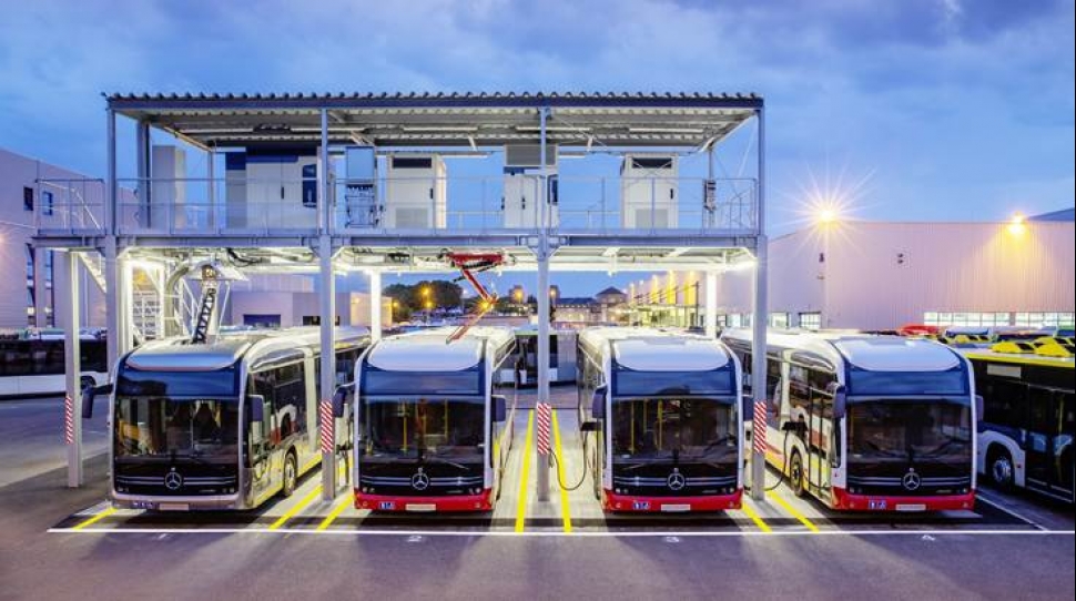 다임러 그룹은 독일 만하임에 있는 버스공장에 전기 버스 E-시타로를 위한 충전소를 세우면서 천장에서 충전할 수 있는 충전 레일 콘셉트를 만들었다. 충전 케이블이 레일을 따라 이동하면서 전기 버스과 연결되는 방식이다. 버스 충전 콘센트 역시 지붕에 있어서 연결이 쉽고 300kW급 초급속 충전이 가능하다. 따로 사람이 연결할 필요 없이 레일이 움직이며 버스와의 위치를 맞춰 충전을 진행한다. 충전소에는 세 대의 버스가 들어갈 수 있으며 충전기 위는 비와 눈을 막기 위해 커다란 갑판을 달았다.