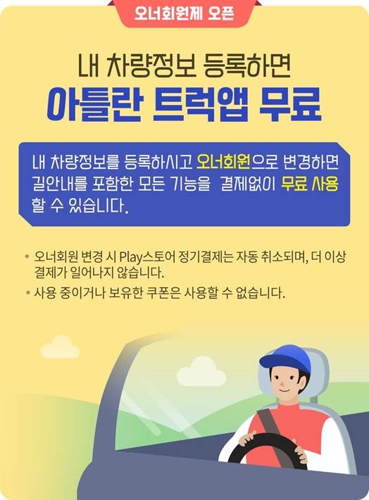 사용자가 앱을 업데이트한 후 본인의 차량정보를 입력하면 자동으로 ‘오너회원’으로 변경된다. 차량번호 유형(영업용/건설기계/자가용), 운행유형(지입/고정/콜/자가), 화물차 크기, 적재중량, 적재함 형태 등 간단한 차량제원만 입력하면 된다. 차량정보를 입력하지 않는 사용자는 유료회원으로 유지된다.