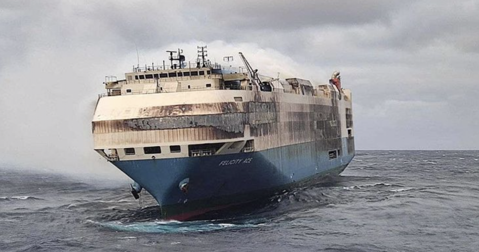 2일 워싱턴포스트에 따르면 포르트갈 해군은 성명을 통해 "펠리시티 에이스호를 인양하기 위해 노력했으나 현지 시간 1일 오전 9시 경 선박과 4000대의 차량이 포르투갈 아조레스 제도 동쪽 약 370km 해상에서 침몰했다"고 밝혔다.