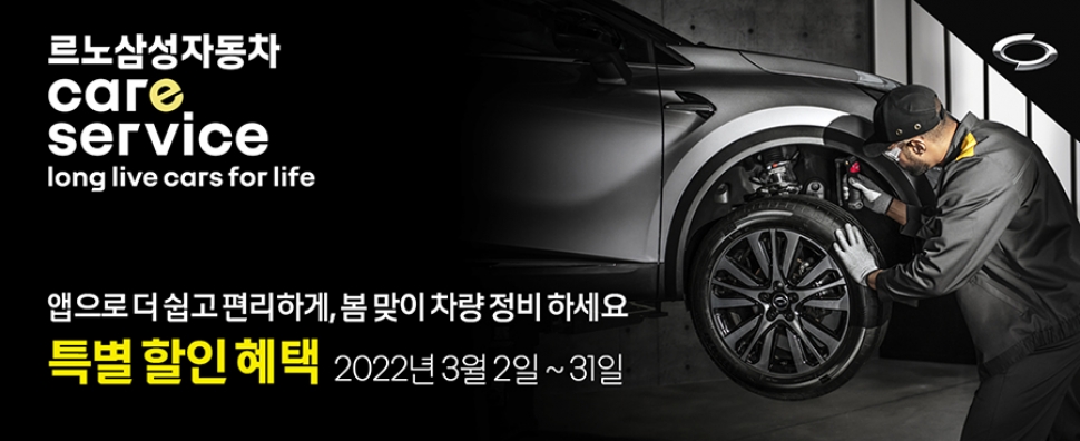 특별 할인 프로모션도 3월 한 달 간 실시한다. 오는 31일까지 르노삼성자동차 모바일 앱에서 온라인 정비 예약 서비스를 통해 프리미엄 엔진오일을 교체하면 20% 할인 혜택과 더불어 프로모션 종료 후 1만원 상당의 정비 할인 쿠폰을 지급한다.