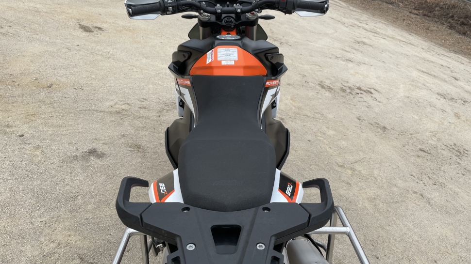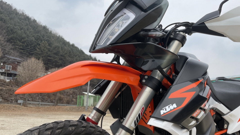 KTM 특유의 헤드램프 디자인은 여전히 호불호가 나뉜다. 하지만 KTM을 상징하는 오렌지 컬러와 조화를 이뤄 확실한 존재감을 드러낸다. 프론트 포크와 리어 쇼크업소버는 오프로드 주행에 특화된 WP의 XPLOR를 사용한다. 포크와 쇼크업소버의 가동 범위 모두 240mm(일반적인 가동 범위는 120~150mm 내외)에 달할 정도로 길다. 이를 바탕으로 263mm의 넉넉한 지상고와 880mm라는 높은 시트를 완성한다. 타이어는 오프로드 주행을 염두에 둔 메첼러 카루 3를 사용한다. 이 같은 구성 덕분에 890 어드벤처 R은 한 눈에 봐도 오프로드를 잘 달릴 것처럼 생겼다. 그리고 실제로도 엄청난 오프로드 성능을 뽐낸다.