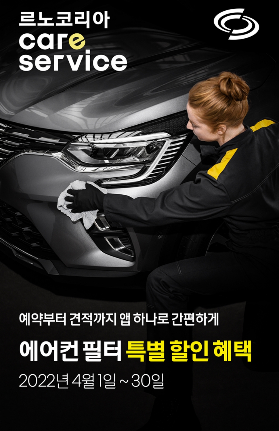 르노코리아자동차 김태준 영업마케팅본부장은 “르노코리아차는 이번에 케어 서비스 캠페인을 런칭하며 평일 야간 및 주말 입고 서비스를 새롭게 선보이고 봄철 고객 혜택을 높이기 위해 에어컨 필터 할인 이벤트까지 특별히 마련했다”며 “르노코리아차가 제공하는 고객 만족 서비스와 함께 쾌적하고 안전한 차량으로 따뜻한 봄나들이 즐기시길 바란다”고 말했다.