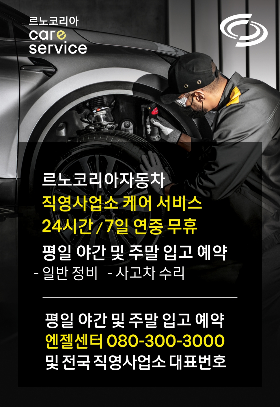 또 평일 야간 및 주말 입고 서비스를 함께 선보인다. 직영 서비스센터 운영이 종료되는 평일 오후 6시 이후 또는 주말에 르노코리아자동차 직영 서비스센터에 방문하는 고객은 엔젤센터 또는 전국 직영 서비스센터 야간 접수처를 통해 차량을 입고할 수 있다. 입고가 완료된 차량은 다음 날 해당 직영 서비스센터에서 수리 완료 예정 일자를 파악해 고객에게 별도 안내를 진행한다.