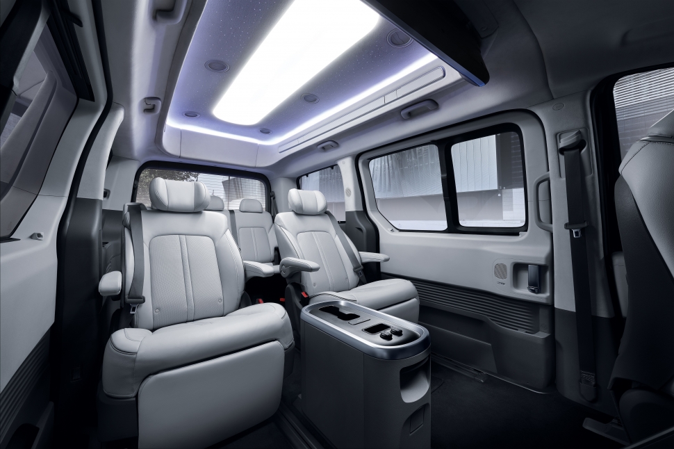 실내는 기본 트림의 전고 보다 205mm 늘리고 1열에서 2~3열까지 이동 가능한 무버블 콘솔을 적용해 공간 활용성을 높였다. 무버블 콘솔에는 ▲팝업식 테이블 ▲컵홀더 ▲USB C타입 충전 기능을 포함한다. 또 ▲HDMI/USB 연결 ▲스마트기기 미러링 ▲지상파 HD-DMB 시청 기능 등을 갖춘 동급 최대 크기의 25인치 후석 디스플레이를 탑재했다.