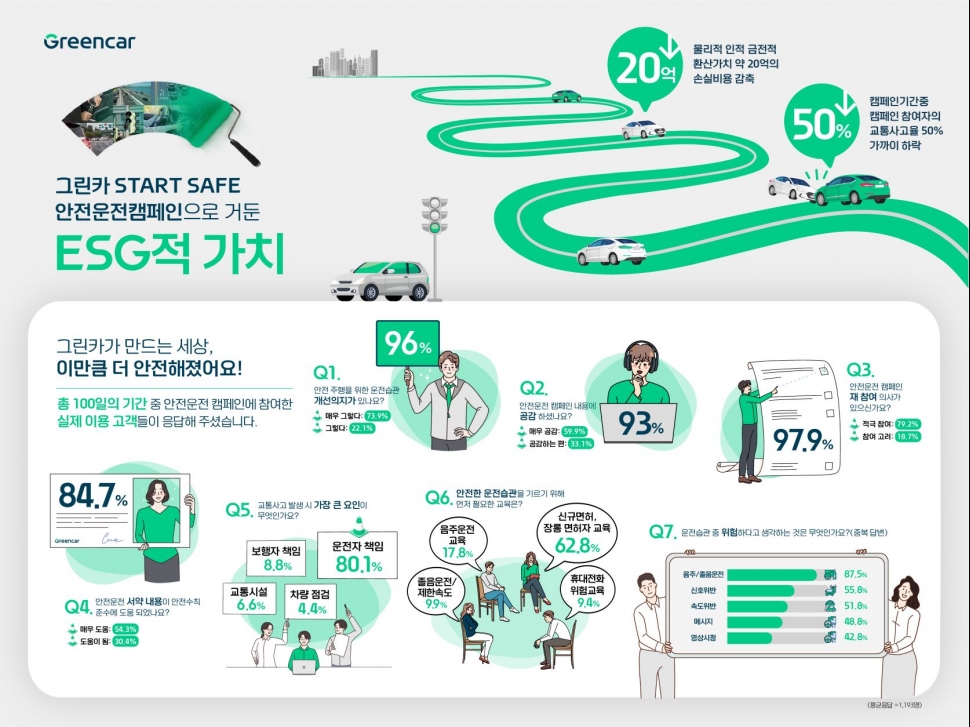 추가로 그린카는 캠페인 성과를 확인하고 운전자 및 도로 교통안전에 대한 대중의 인식 조사를 위해 캠페인 참가자를 대상으로 지난 3월15일부터 21일까지 설문조사를 실시했다.
