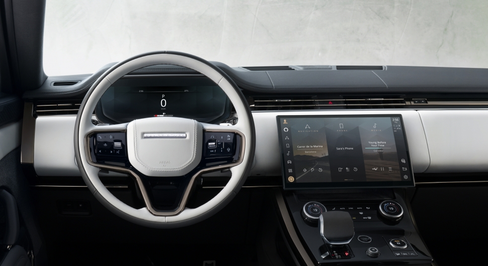 실내의 경우 랜드로버의 트레이드 마크인 커맨드 드라이빙 포지션을 조종석과 유사한 콕핏 구조로 새롭게 해석했으며 운전자에게 몰입감 넘치는 주행 환경을 제공한다. 더불어 역대 최대 사이즈의 13.1인치 커브드 플로팅 모니터를 장착하고 윈저 및 부드러운 세미 아닐린 가죽 옵션을 제공한다.