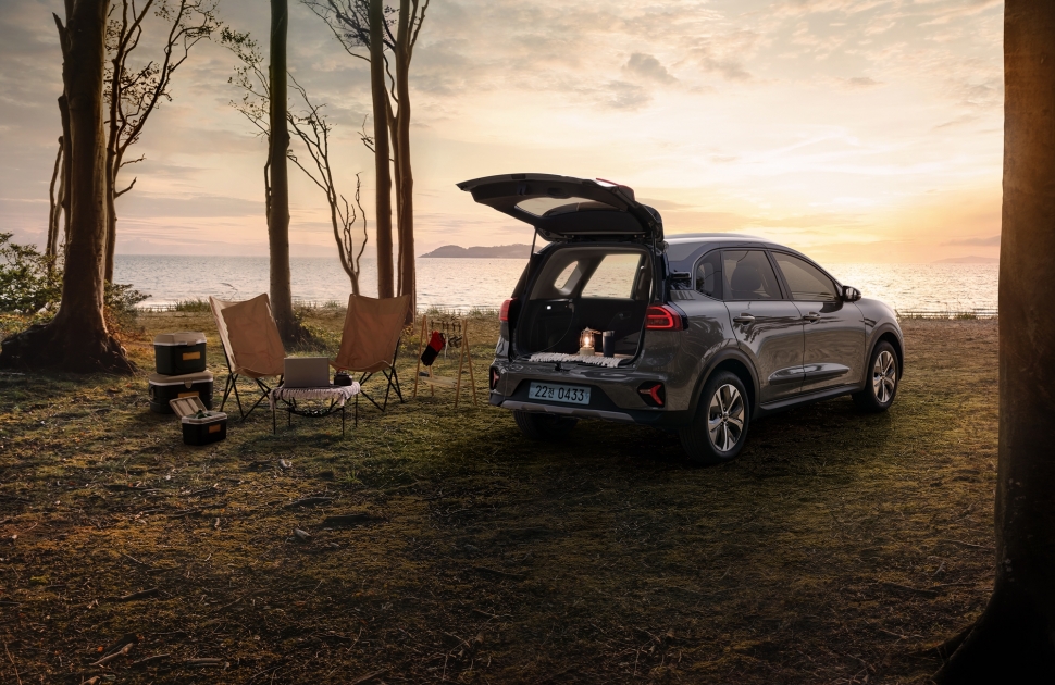 실내 V2L 콘센트, 러기지 멀티 수납트림, 평탄화 보드, 캠핑 테이블 등으로 구성했으며 트렁크 좌ㆍ우 휠 하우스 상단에 위치한 수납트림에 실내 V2L 콘센트, 램프, 수납공간 등이 위치하고 있다.