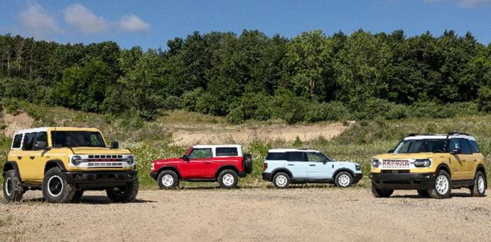 또 옐로우스톤 메탈릭(Yellowstone Metallic) 색상은 2023년 후반에 피크 블루(Peak Blue)는 그 이듬해에 순차적으로 출시될 예정이다. 옥스퍼드 화이트 색상으로 도색된 금속 지붕차, 그릴, 휠, 브롱코 로고가 새겨진 휀더를 통해 현재의 브롱코에도 동일하게 적용되고 있는 1세대 브롱코의 디자인 철학을 잘 보여준다.