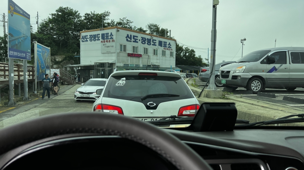 배를 타려면 반드시 신분증이 필요하다. 아이들은 주민등록번호만 기재하면 된다. 만약 신분증이 없다면 차로 10분 거리의 주민센터에서 등본을 발급받으면 된다. 표를 사고 배로 들어간다. 얼마 전 배낚시에서 멀미의 쓴맛을 봤던 아이들은 바짝 긴장했다. 차를 탄 채로 배에 들어가는 광경은 신기하다.