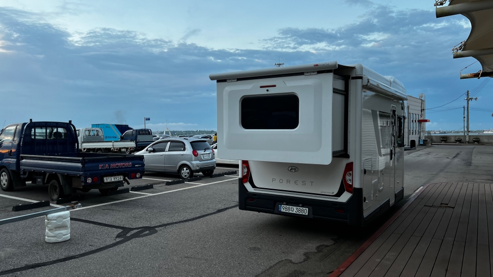 캠핑카 취침 이틀째. 좀 더 요령도 생겼고 에어컨도 밤새 작동할 만큼 배터리가 충분하다. 선착장 공중화장실에서 씻고 캠핑카로 돌아왔다. 선착장에 줄을 서서 내일 첫 배를 타려는 사람들이 보인다. SUV 트렁크를 열고 모기장을 치고 밤을 보낼 모양이다. 간혹 있는 전기차는 에어컨을 틀어 놓은 듯 유리 밖에 습기가 찼다.