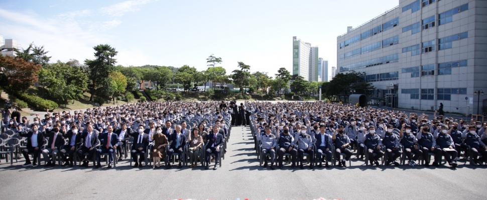 취임식 무대 위에는 곽 회장을 포함해 정용원 관리인을 포함한 쌍용자동차 노사 관계자가 함께해 밝은 미래를 다짐하는 행사를 가졌다.