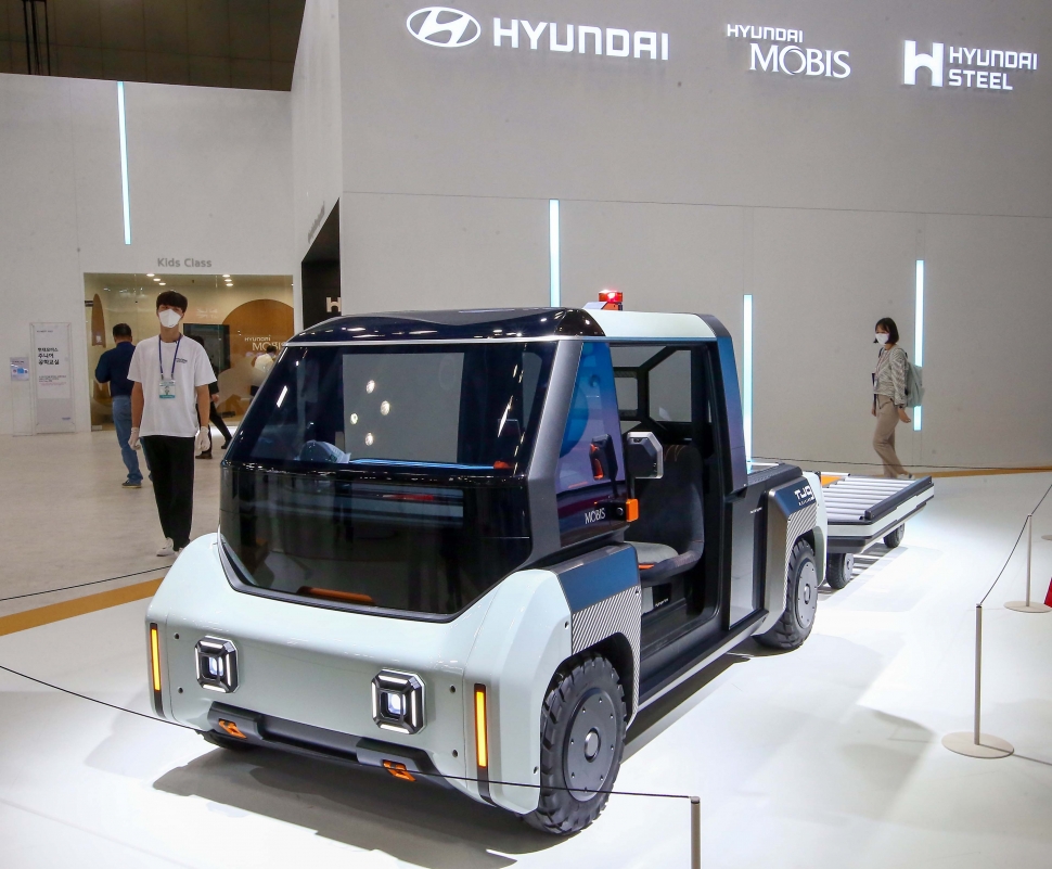 대상으로 선정된 현대모비스의 엠비전 터그(M.Vision Tug)는 수하물 운송 특수 모빌리티 차량으로 2인이 탑승 가능한 차체에 화물 운반용 돌리가 연결돼있는 것이 특징이다. 또 30KW 용량의 수소연료전지를 장착했다. 여기에 1.3톤의 적재능력과 20km/h의 이동 속도를 갖춰 향후 실제 산업현장에서 활용도가 높다.