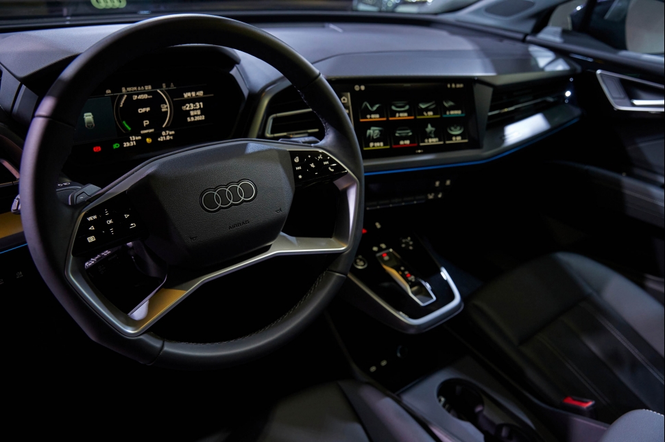 또 Q4 스포트백 e-트론은 S 로고 가죽 스포츠 시트, 블랙 헤드라이닝, 스테인리스 스틸 페달, 매트 브러시 다크 알루미늄 인레이, S 로고 발광 도어 실 플레이트가 기본으로 적용되어 스포티한 매력을 한층 더 강조했다.
