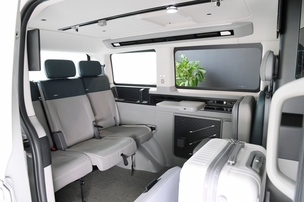 이날 공개된 프로토타입 모델 '엔지니어링 벅'은 공항픽업용 제품으로, 운전석 대시보드를 낮춰 보다 넓은 시야를 확보하고 곳곳에 수납공간을 대거 갖췄다. 기존 조수석 공간 사이에는 벽을 둬서 독립된 공간을 만들고, 이동식 캐리어 거치대를 마련했다. 별도 신발 보관함도 있다.