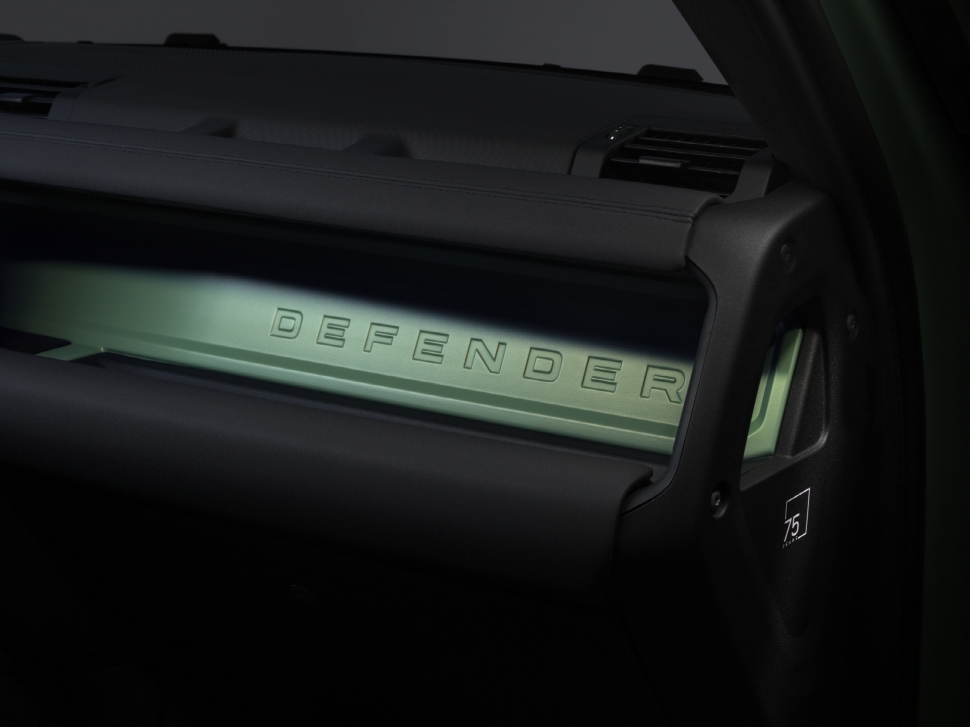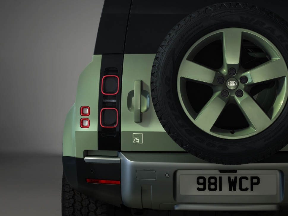 신차는 에디션 전용 색상인 그래스미어 그린을 디펜더 라인업 최초로 적용했다. 20인치 알로이 휠과 센터 캡에 동일하게 적용된다. 테일게이트에는 75주년 기념 뱃지 및 세레스 실버(Ceres Silver) 범퍼가 더해져 한정판 모델만의 차별성을 극대화한다.