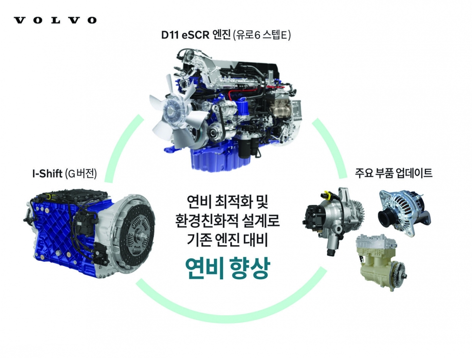 '퓨어 세이브(Fuel Save)'라 불리는 새로운 D11 eSCR 엔진 시스템은 유로6 스텝E 기준에 맞춰 성능과 연비 효율성을 극대화했고, 환경친화적으로 설계된 SCR 장치를 통해 온실가스 배출을 감소시켰다.