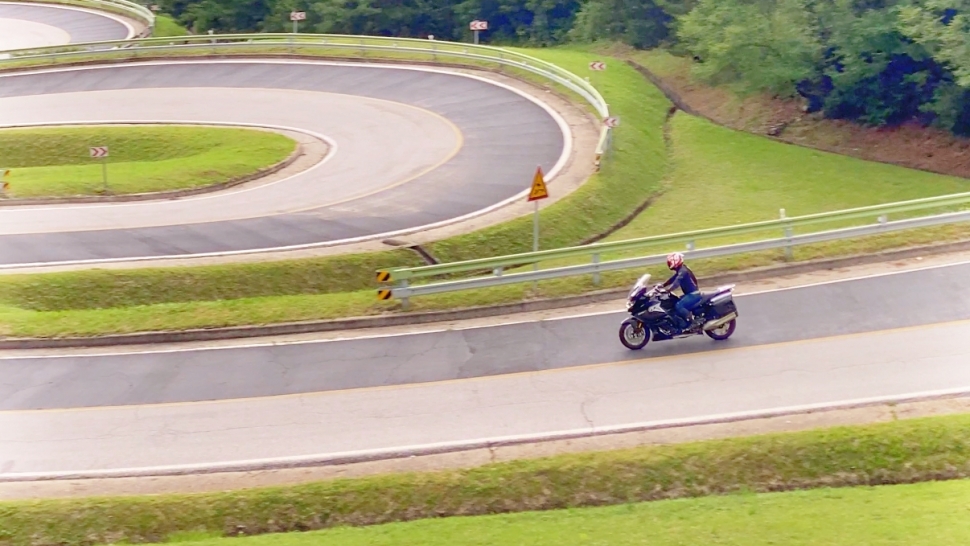 스로틀을 지긋이 비틀고 있으면 K 1600 GT는 느낌상 묵직하게 속도를 높인다. 하지만 대낮에도 선명하게 빛나는 10.25인치 디지털 계기판은 정신없이 숫자를 바꾼다. 이런 모습을 보면 생각보다 훨씬 더 속도가 빠르게 올라가는 것을 알 수 있다. 이어진 고속에서도 K 1600 GT는 엄청난 안정감을 자랑한다. 1618mm에 달하는 긴 휠베이스와 공차중량 343kg의 묵직한 차체, 그리고 뛰어난 공력 성능 덕분이다.
