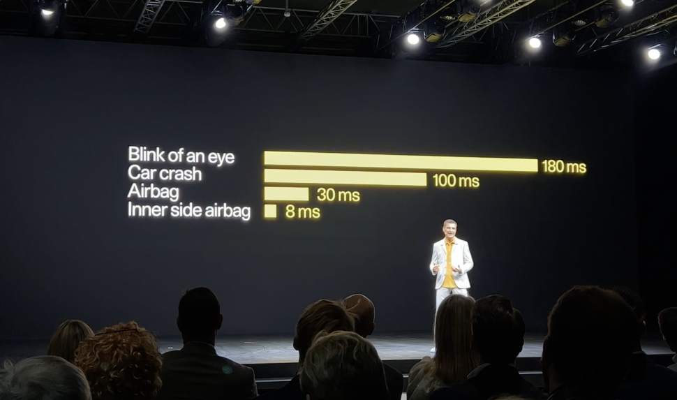 폴스타3에는 몇 가지 기존 차에서 볼 수 없었던 신기술을 적용했다. 토마스 잉엔라트 CEO는 “폴스타 3에는 에어백이 폭발하는 시간 30ms 보다 훨씬 빠른 8ms의 속도로 반응하는 사이드 에어백이 탑재됐다”며 “측면충돌은 탑승자와 충격지점 사이의 거리가 짧아 보다 빠른 반응 속도를 필요로 한다”고 설명했다.