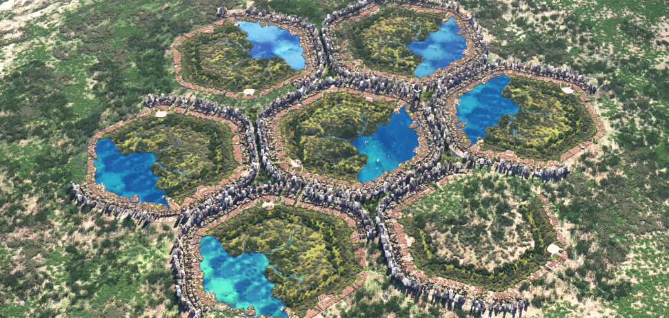 바다 도시는 사라져가는 산호초 중심에 인공도시를 구성해 바닷속 자연을 보존하는 동시에 인간과 자연이 공존할 수 있도록 설계했다. 도시는 해저지형과 산호초 분포에 따라 주거, 상업, 연구, 녹지 등의 지역으로 나눠 구성된다.