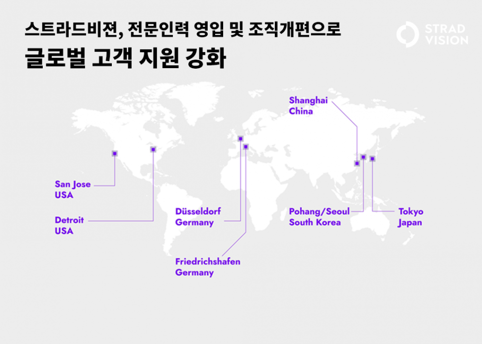 스트라드비젼은 이번 조직개편을 통해 현지 고객사들과 더 많은 서비스와 기술지원을 제공할 수 있도록 고객 관리 및 영업 엔지니어링 팀을 도입했다. 글로벌 고객사들은 전담 어카운트 매니저 및 솔루션 엔지니어를 통해 장기적인 사업 계획 수립과 개별 요구사항이 반영된 스트라드비젼 제품 로드맵을 제공받을 수 있다.