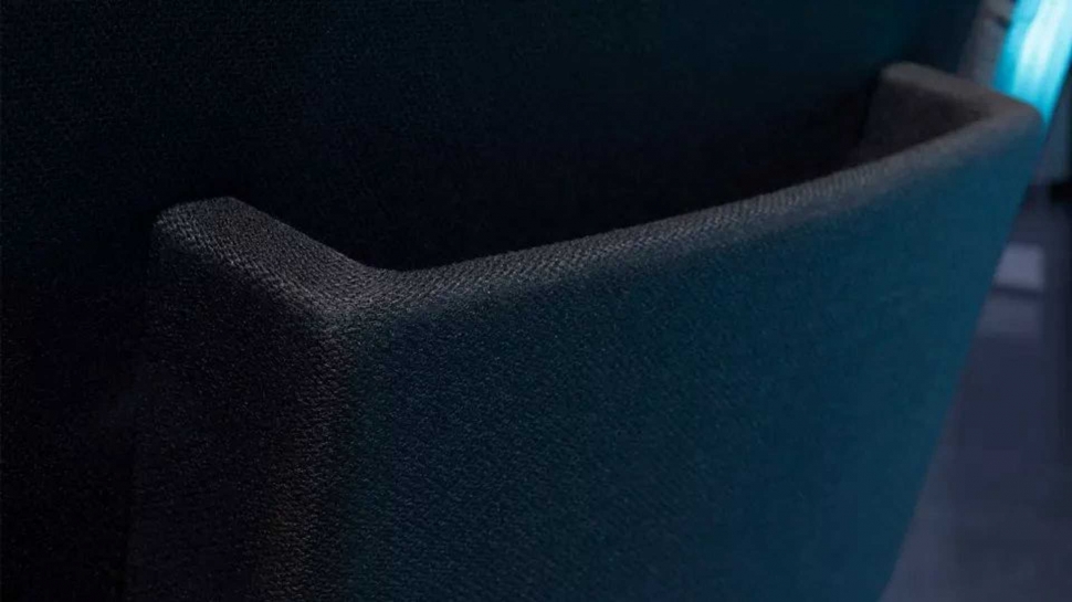 앞쪽에는 폭스바겐의 전기차인 ID. 버즈를 연상시키는 LED 스트라이프를 적용했다. 또 헤드라이트를 넣어 야근 시에 사용할 수 있으며, 회의실 입장 시에 깜빡이로도 이용 가능하다. 의자 뒷쪽에는 노트북과 간단한 파일을 넣을 수 있는 수납공간을 만들었다.